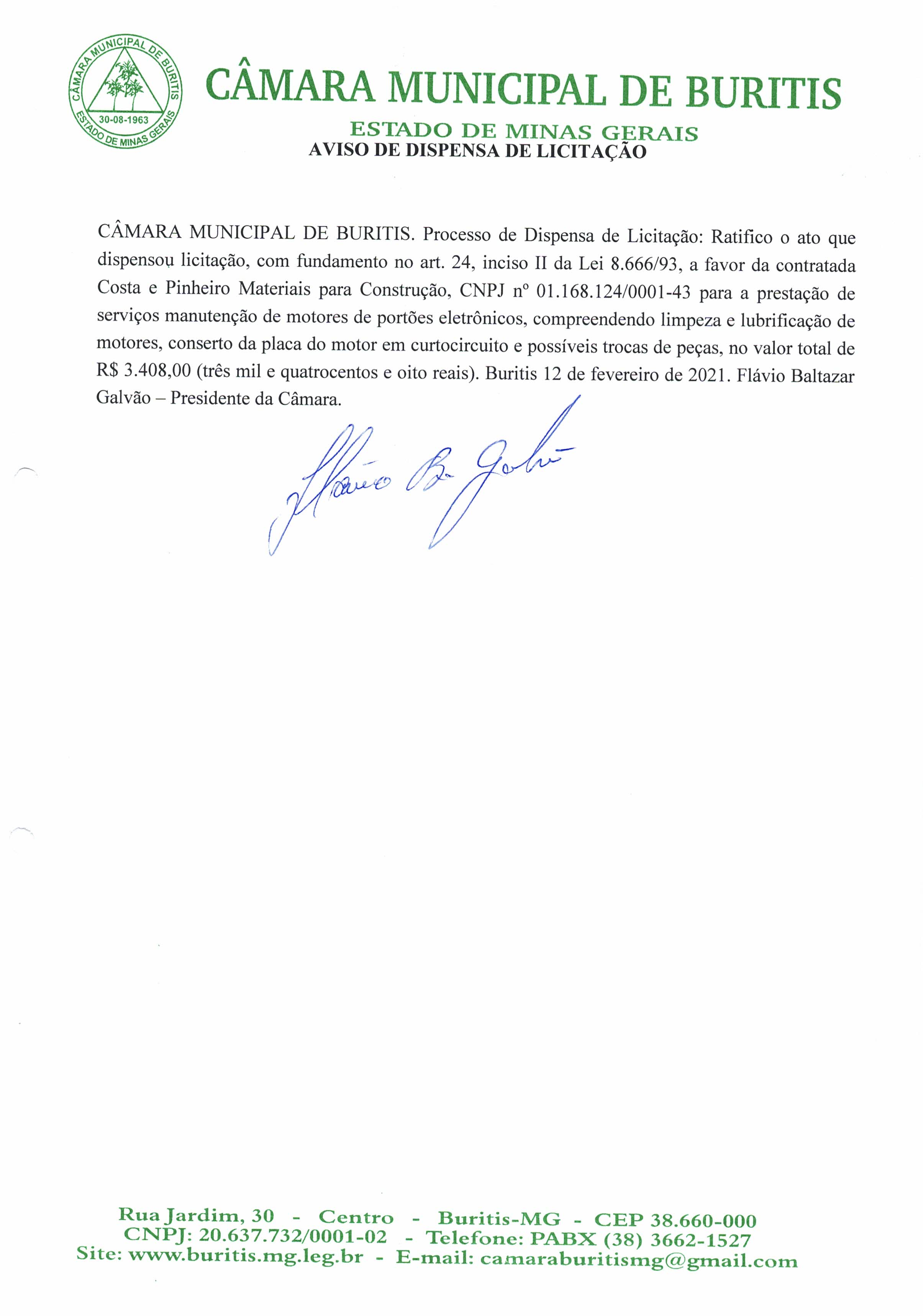Dispensa de Licitação Manutenção Portão Eletrônico