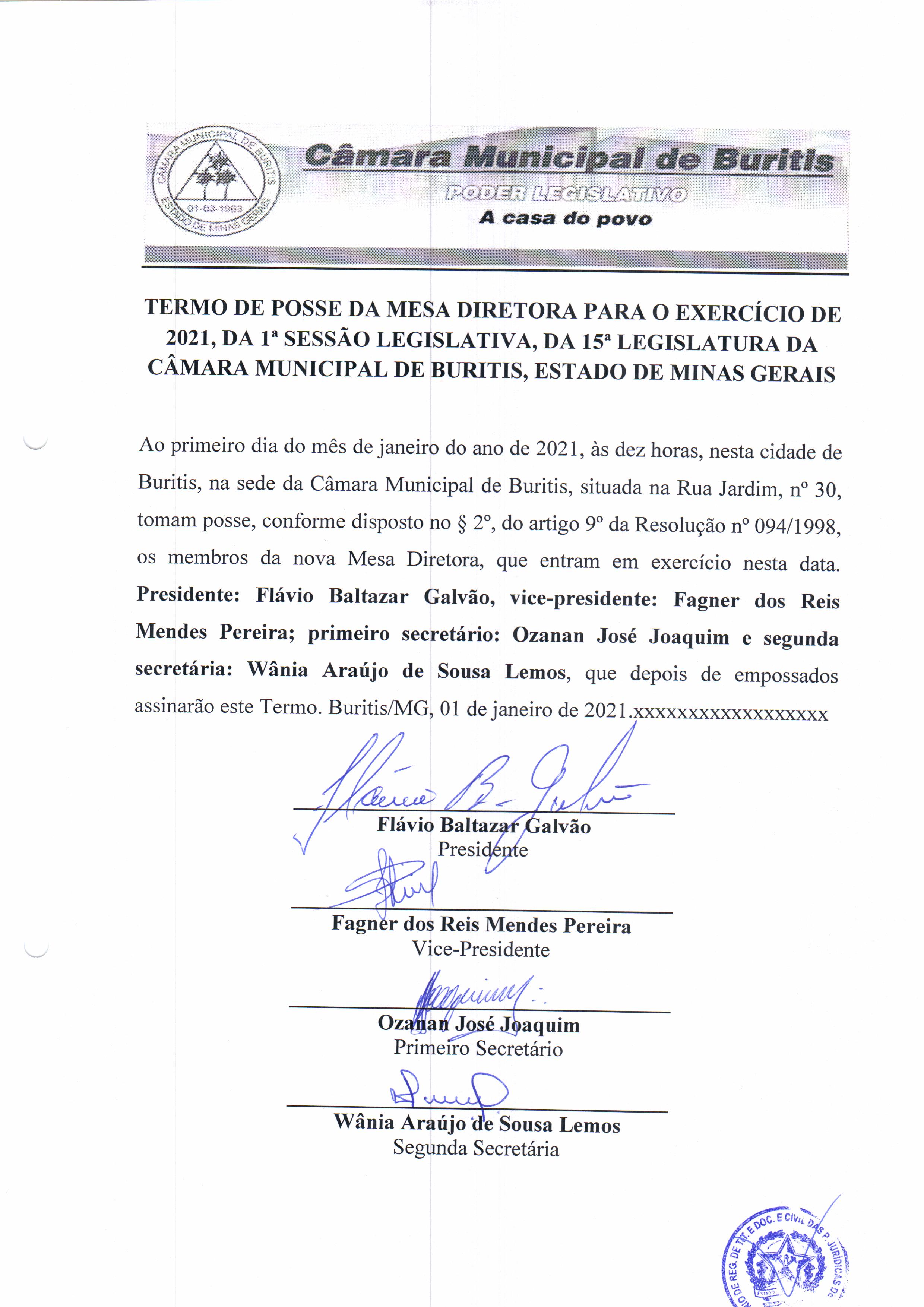 termo de posse mesa diretora 2021