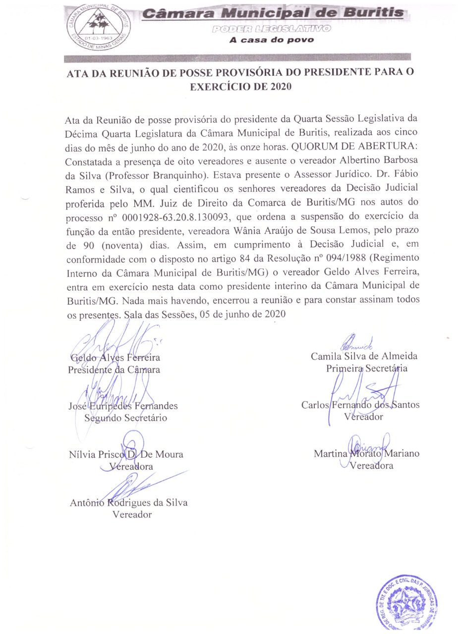 ata de Posse Provisória do Presidente para o exercício de 2020